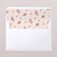 Sur le faire-part de naissance Scarlett, écureuil, lapin et oiseau jouent à cache cache au cœur d'un superbe tableau de fleurs oranges et roses. Une création joyeusement bohème, parfaite pour partager la naissance de bébé au printemps ou en été.