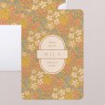 Le faire-part de naissance Inaya révèle un superbe tableau de fleurs aux couleurs ensoleillées. Au centre de cette joyeuse fresque aux palettes jaunes et orangés, le prénom de votre enfant est révélé. Une jolie façon de partager son arrivée, au printemps ou en plein cœur de l'été.