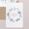 Sur le faire-part de naissance Koala Family, une adorable colonie de marsupiaux, perchés dans une couronne végétale, délivreront avec tendresse l'heureuse nouvelle à vos proches : bébé est enfin là !