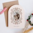 Sur le faire-part de naissance original Empire, houx et élégants rubans ornent la plus belle photographie de votre enfant. Un modèle aux délicats tons beiges, idéal pour annoncer une naissance en plein hiver.