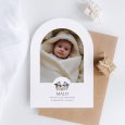 Ce faire-part de naissance se présente sous forme de carte portrait recto verso, avec des coins arrondis pour plus de douceur.