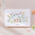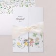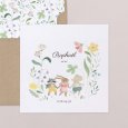 Sur le faire-part de naissance Lucky day, souris, lapin et raton laveur gambadent dans un champ de fleurs colorées. Un joyeux tableau printanier, empreint de douceur, parfait pour annoncer l'arrivée de votre plus grand bonheur.