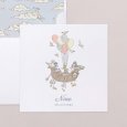 Sur le faire-part Over the clouds, d'adorables animaux s'envolent, entre les nuages et les étoiles, pour la plus belle aventure de votre vie : votre famille qui s'agrandit. Un tableau coloré à l'univers enfantin résolument vintage, parfait pour partager votre bonheur de façon unique.