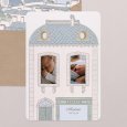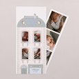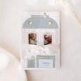 Sur le faire-part de naissance photo Home sweet home, une jolie façade de maison s'esquisse dans des tons bleus clair et beige rosé. Aux fenêtres se révèlent de jolies photographies de bébé, parfaites pour partager votre bonheur avec ceux que vous aimez.