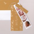 Ce faire-part de naissance se présente sous la forme d'une carte "marque-page", pliée par le milieu. À son ouverture, vos destinataires auront le plaisir de découvrir un photomaton de votre nouveau-né, apposé à côté de votre heureuse annonce.