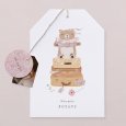 Célébrez l'arrivée de votre petit trésor avec le faire-part de naissance Marceline. Sur cette création, un adorable nounours perché sur une pile de valises annonce votre bonheur avec tendresse.