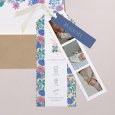 Ce faire-part de naissance se présente sous la forme d'une carte "marque-page", pliée par le milieu. À son ouverture, vos destinataires auront le plaisir de découvrir un photomaton de votre nouveau-né, apposé à côté de votre heureuse annonce.