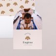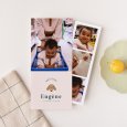 Ce faire-part de naissance se présente sous la forme d'une carte "marque-page", pliée par le milieu. À son ouverture, vos destinataires auront le plaisir de découvrir un photomaton de votre nouveau-né, apposé à côté de votre heureuse annonce.