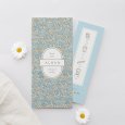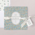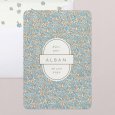 Le prénom de votre enfant s'inscrit au cœur d'une délicate fresque de fleurs bleues sur le faire-part de naissance Georgia blue. Un tableau bohème illustré avec poésie, parfait pour conter l'arrivée de bébé ce printemps ou cet été.