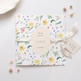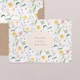 Jonquilles, violettes, pissenlits et autres fleurs colorées s'invitent sur le faire-part de naissance Lilly Rose. Frais et printanier, ce tableau complété d'adorables abeilles sera parfait pour conter l'arrivée de votre petite fille ou garçon, au printemps ou en été.