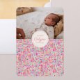 Sur le faire-part de naissance Ikat s'invite une rafraîchissante palette de couleurs aquarellée. Graphique et colorée, cette création contera, avec originalité, la naissance de votre petite fille ou garçon au printemps ou en été. - couleur : rose, beige, bleu - thème : original, coloré