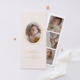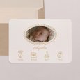 Ce faire-part de naissance se présente sous la forme d'une carte "marque-page", pliée par le milieu. À son ouverture, vos destinataires auront le plaisir de découvrir un photomaton de votre nouveau-né, apposé à côté de votre heureuse annonce.