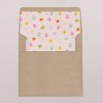 Ce faire-part de naissance se présente sous la forme d'une carte carrée pliée, agrémentée d'une étiquette ronde perforée.