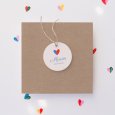 Cette dernière pourra être attachée à l'aide d'un ruban (à choisir en supplément). Deux perforations sont prévues sur le recto de la carte pour faire passer le ruban.