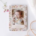 Ce faire-part de naissance se présente sous la forme d'une carte portrait pliée, avec une élégante découpe en forme d'arche sur sa couverture. Cette dernière mettra en valeur la photo de votre nouveau-né, imprimée sur une carte volante glissée à l'intérieur.