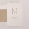 Sur le faire-part de naissance Apollina I, l’initiale du prénom de votre nouveau-né est mise à l’honneur. Un modèle qui partagera en toute simplicité le bonheur de cette nouvelle arrivée dans la famille.