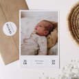 Le faire-part de naissance minimaliste Edito partagera tendrement la première page de la plus belle des histoires. Photographie de votre enfant et typographie moderne subliment ce modèle épuré : vos proches vont l’adorer !