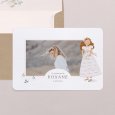 Délicates notes végétales et fleuries, petite fille en robe de cérémonie, photographie de votre communiante adorée : le faire-part Caminando présage un évènement singulier à ne pas manquer.