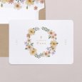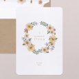 Une jolie couronne de fleurs encadre votre annonce de communion sur le faire-part Camomille. Sublimée d’un lettrage doré, cette fresque ensoleillée donnera le ton de la journée, dès l’ouverture du courrier.