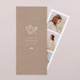 Une jolie colombe blanche tient dans son bec une branche d’olivier sur le faire-part de communion Magdalena. Ce modèle d'aspect kraft saura ravir vos invités grâce à sa simplicité et son élégance.