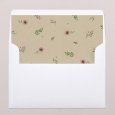 Ce faire-part se présente sous la forme d’un feuillet, se dépliant en 3 parties. Il se referme à l’aide d’une jolie étiquette personnalisable (incluse) et d’un ruban (au choix et en supplément).