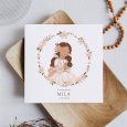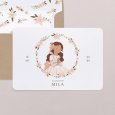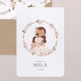 Vêtue de sa plus belle robe de communion, votre fille se prépare à célébrer cet évènement d’exception sur le faire-part Credo II. Sublimé d’une couronne de fleurs pastel, ce modèle enchantera assurément vos invités.