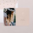 Une blanche colombe sublimée de dorures invite vos convives pour un événement à ne pas manquer : la communion de votre enfant. C’est avec joie que vos invités découvriront le faire-part de communion Raphaëlle, personnalisé avec sa jolie photographie.