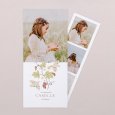 Sur le faire-part personnalisable Petit Sarment, des colombes apportent l’heureuse nouvelle : la communion de votre enfant va être célébrée ! Illustrée avec tendresse et sublimée avec votre photo préférée, cette invitation charmera assurément vos invités.