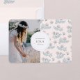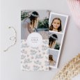 Une jolie fresque florale s’invite sur le faire-part de communion Pastelle. Personnalisable avec la photo de votre belle communiante, cette invitation pleine de fraîcheur et de poésie est idéale pour une célébration estivale.
