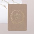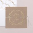 Vos prénoms s'inscrivent au cœur d’une couronne végétale sur le faire-part de mariage Tosca. Ce modèle champêtre chic, délicatement esquissé et sublimé de finitions dorées, annoncera avec élégance votre union prochaine.