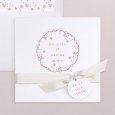 Entre tradition et modernité, le faire-part de mariage Bruges est délicatement sublimé d'une couronne végétale. Une création originale qui revisite l'élégance à la française, parfaite pour un mariage élégant ou champêtre.
