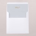 Ce faire-part se présente sous la forme d'une carte carrée pliée par le milieu. Les trois perforations vous permettront de glisser un joli ruban (au choix, en supplément) pour une touche d'élégance supplémentaire.