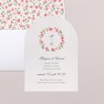 Sur le faire-part de mariage Sweet roses, une couronne de roses s’appose autour des prénoms des futurs mariés, élégamment calligraphiés. Une délicate aquarelle aux tons rosés, parfaite pour annoncer un mariage au thème romantique ou champêtre.
