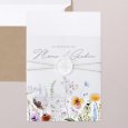 De jolis brins de fleurs sauvages s'esquissent sur le faire-part de mariage Wildery. Cette composition empreinte de poésie, sublimée d’une élégante typographie, sera parfaite pour célébrer un mariage au thème bohème.