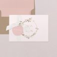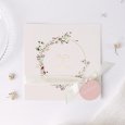 Ce faire-part de mariage se présente sous la forme d’une carte paysage pliée en trois volets, accompagné de son étiquette personnalisée. À l’ouverture, vos proches découvriront les détails de votre beau jour.