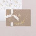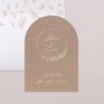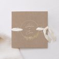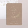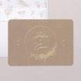 Sur le faire-part de mariage Mozart, une intemporelle couronne végétale entoure avec finesse vos prénoms. Ennobli de dorures raffinées et sublimé d’un papier d’aspect kraft, ce modèle sera parfait pour une cérémonie de mariage au thème nature.