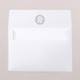 Ce faire-part présente un format portrait plié. Sa silhouette classique est adoucie par des coins arrondis. Il s'accompagne d'une étiquette ronde personnalisée, à attacher à l'aide d'un joli lien (proposé en accessoire).
