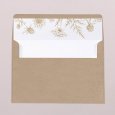 Sur le faire-part de mariage Carmen, une superbe couronne de fleurs esquissée en or encadre les prénoms des jeunes mariés. Une composition raffinée, parfaite pour conter un mariage champêtre, chic ou bohème.