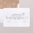 Un magnifique domaine s’esquisse sur le faire-part de mariage French Riviera. Luxuriante végétation et discrètes montagnes tracées subliment ce modèle : parfait pour annoncer, avec élégance, votre mariage dans le sud de la France.