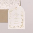 Mise en valeur par de délicats motifs végétaux et un lettrage doré, votre annonce est au centre des attentions sur le faire-part de mariage Bizet. Un modèle un brin vintage très raffiné, qui présage la plus belle des journées.