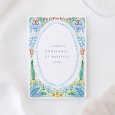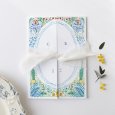 Un superbe tableau aquarellé s’invite sur le faire-part de mariage Blue garden. Fins bouquets végétaux, pots et fleurs colorées s’esquissent au cœur d’un idyllique jardin sur cette création, clin d’œil poétique à votre future célébration.