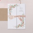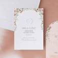 Délicate arche végétale et fleurie, élégante typographie : le faire-part de mariage Queen Mary sera parfait pour donner le ton de votre mariage rêvé, qu'il soit chic, romantique ou joyeusement coloré, au printemps ou en été.