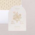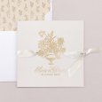 Empreint d'un romantisme intemporel, le faire-part de mariage Richelieu dévoile un délicat bouquet de fleurs déposé dans un vase ancien. Une création inspirée où vos prénoms s'inscrivent sublimés d'or, parfaite pour convier à une réception chic.