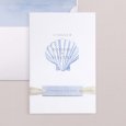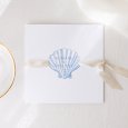 Avec son coquillage délicatement esquissé dans des tons bleutés, le faire-part de mariage Calypso sera parfait pour annoncer une cérémonie en bord de mer, en pleine saison estivale.