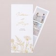 Ce faire-part de mariage au format marque-page est composé de 3 cartes, personnalisables au recto et au verso avec les détails de votre beau jour. Elles peuvent être liées ensemble à l’aide d’un joli ruban (au choix et en supplément).