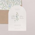 Minimaliste et intemporel, le faire-part de mariage Danaé met en lumière vos prénoms, calligraphiés autour d'une délicate illustration végétale.