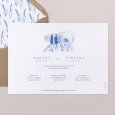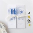 Le Sud s’illustre avec poésie sur le faire-part de mariage Rosemary. Champs à perte de vue, cyprès et maison typique en pierre s’illustrent en aquarelle sur ce modèle : parfait pour annoncer une célébration estivale, dans un lieu empreint de charme.