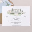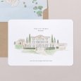 Le château de mariage de vos rêves se révèle en aquarelle sur le faire-part de mariage De Vigny. Avec sa bâtisse de charme aux volets colorés et sa campagne environnante, cette création évoquera à vos invités le lieu enchanteur et l'atmosphère de votre célébration à venir.