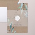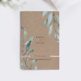 Ce modèle comprend 3 éléments : un faire-part, une carte glissée dans sa pochette interne et une étiquette à attacher sur le devant. Des perforations sont prévues sur le faire-part pour y glisser un joli ruban (au choix et en supplément), agrémenté de l'étiquette.