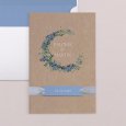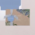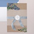 Arche fleurie aux tons bleutés, prénoms habillés d’une typographie raffinée, papier d’aspect kraft : le faire-part de mariage Azzura annonce une célébration à la campagne à ne pas manquer.